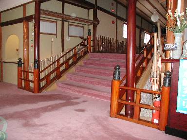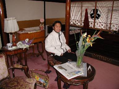 | ここは今までの合宿の宿泊先とは違って、「旅館」である。けっこう豪華な感じ。宿の中を一通り見せてもらった。 |
