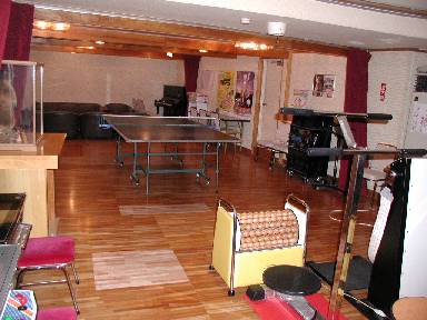 | 練習場は、写真ではちょっとわかりにくいが、広さもちょうどいい感じである。客室やロビーなどとも離れているので、静かである。これであんまり練習しないのはもったいないかな?卓球台なども使えるので、やりたい人はどうぞ。 |